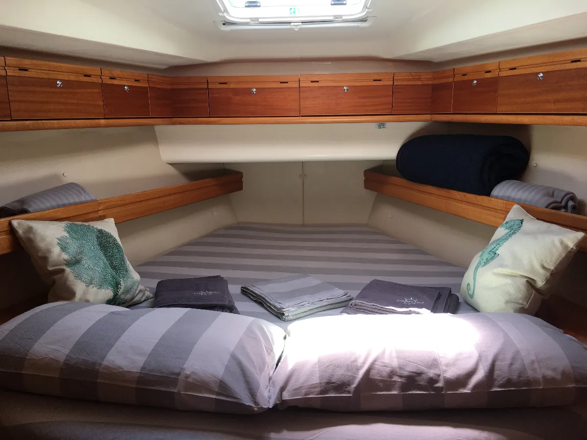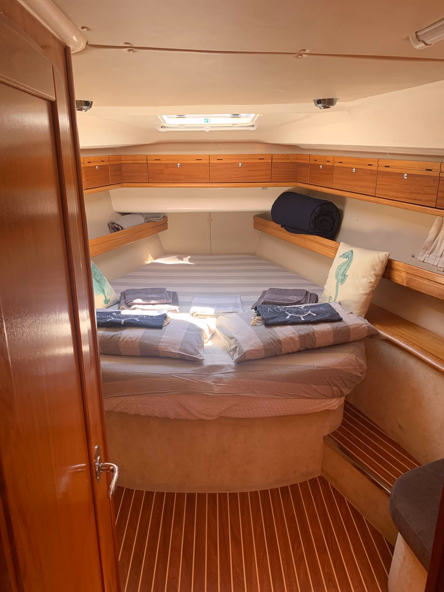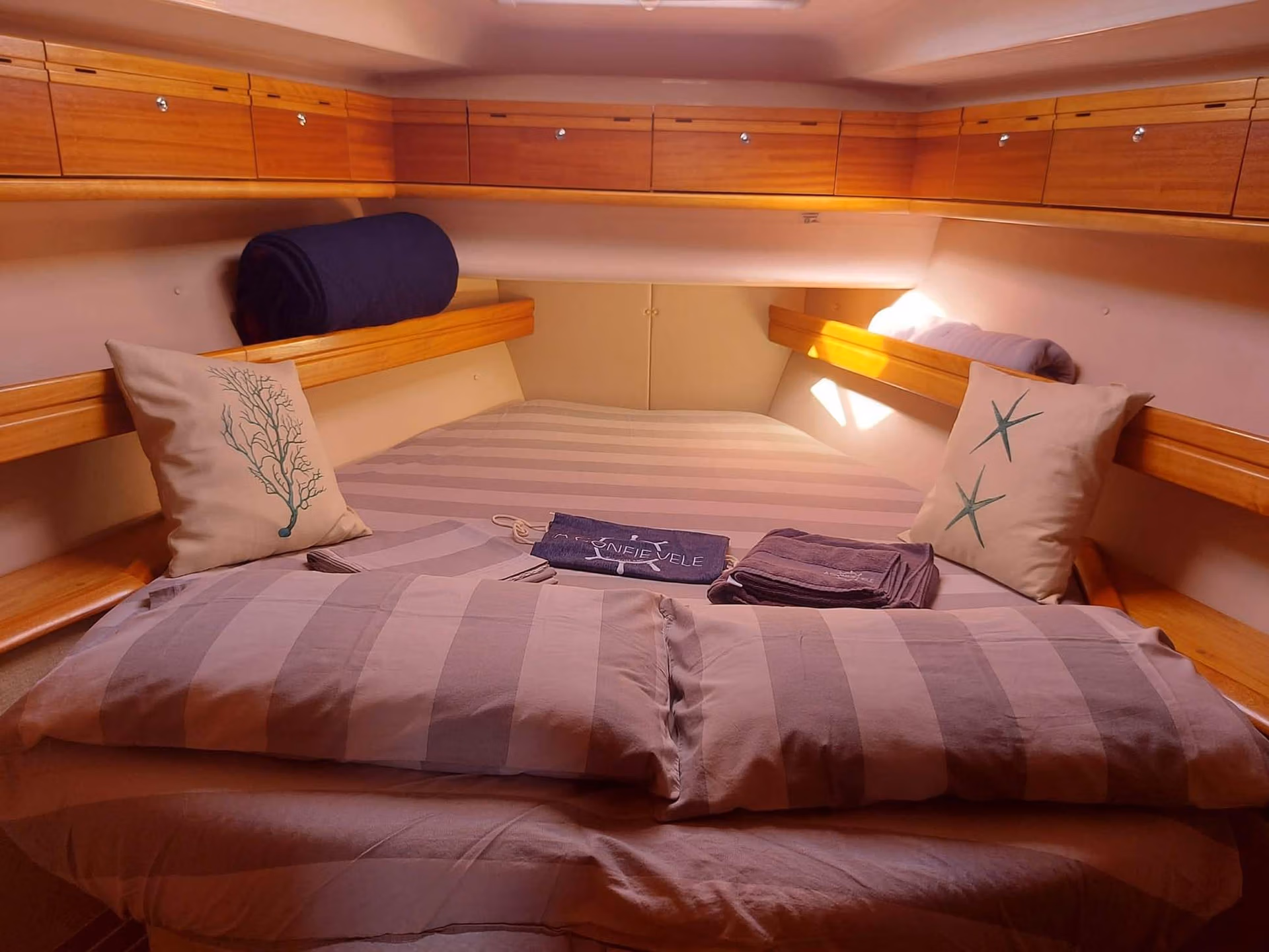 - Privacy Garantita: Noi dell’equipaggio alloggiamo nella cabina con letti a castello; questo significa che nessuno dormirà mai in dinette e i vostri spazi comuni resteranno sempre liberi e riservati.
